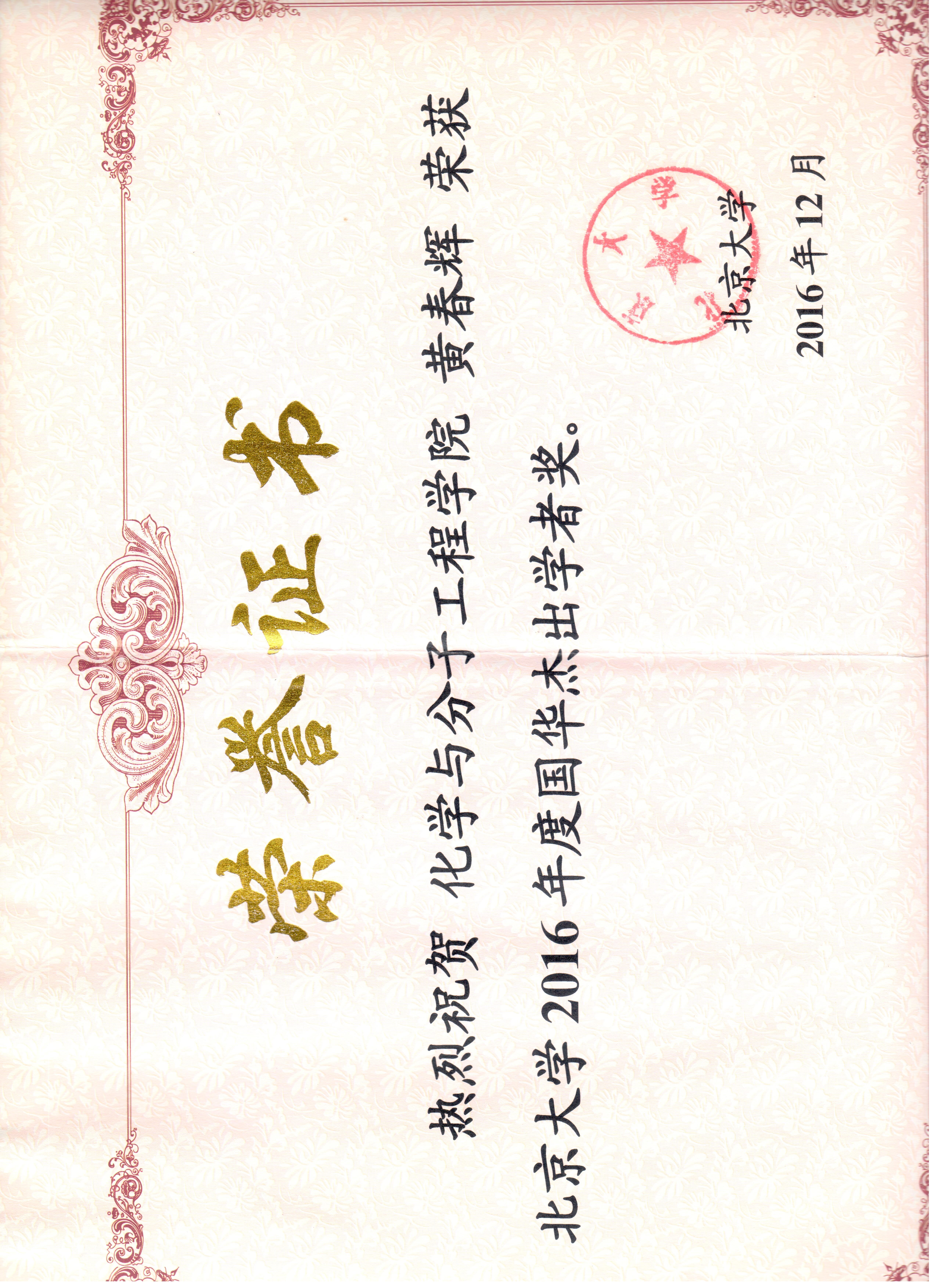2016                     Guohua Outstanding Scholar